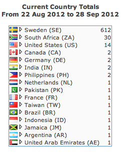 Here’s the table of visitors (from the Clustrmaps widget) and you can see they are overwhelmingly from Sweden – naturally. Then there are visits from myself (South Africa) and probably from my students here as well. After that is a tail of 14 other country visitors. Two of them became followers of the course so it must have been interesting but I haven’t been in touch with them at all, maybe that’s a breach of netiquette?