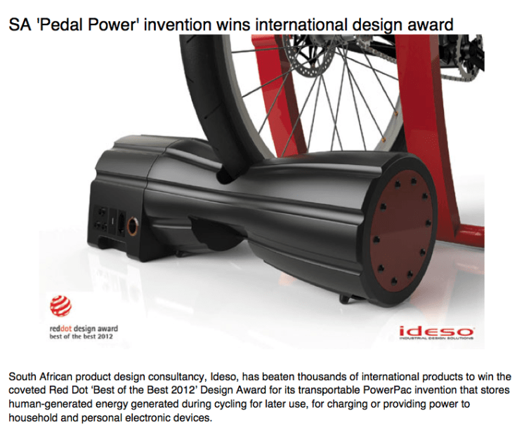 This is one for all of my Swedish friends, especially the cyclists. I am often asked about South Africa and its future and I always say that the popular view is a misrepresentation: reality is very different. Here’s a great example of just that: the South African invention which has just won an international award (click the image for the link). It enables you to store the energy generated whilst cycling for household use.