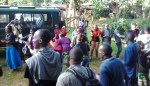 It has been one week of intensive work since the cocktails posting …. so here are my pictures and some quick reflections. Lots of lab work has been done at the Regional Centre for Mapping of Resources for Development: remote sensing applications, GIS work, mentor presentations. The day has started with the walk from ICIPE (the Duduville Guest House) through the dust of Kasarani in the morning, then work all morning, walk back through the dust for lunch and then repeat for the afternoon, evening, the next day and so on ….the first few pictures show some of that. Of course there has also been the chance for the occasional beer later. Then yesterday we were up early for our field excursion to Mt Kenya to see the tree planting activities and Green Belt Movement communities in action. Things got a little delayed at the start and then of course we arrived just after the rain made the last few kilometres impassable. So we walked and were ferried up to Gathiuru, This meant that we arrived very late in Tumutumu (lunch came at 6pm) but we were rewarded with a brief and fascinating glimpse of the sustainability activities in the heart of the highlands. Then it was the long drive home through the traffic to Nairobi.