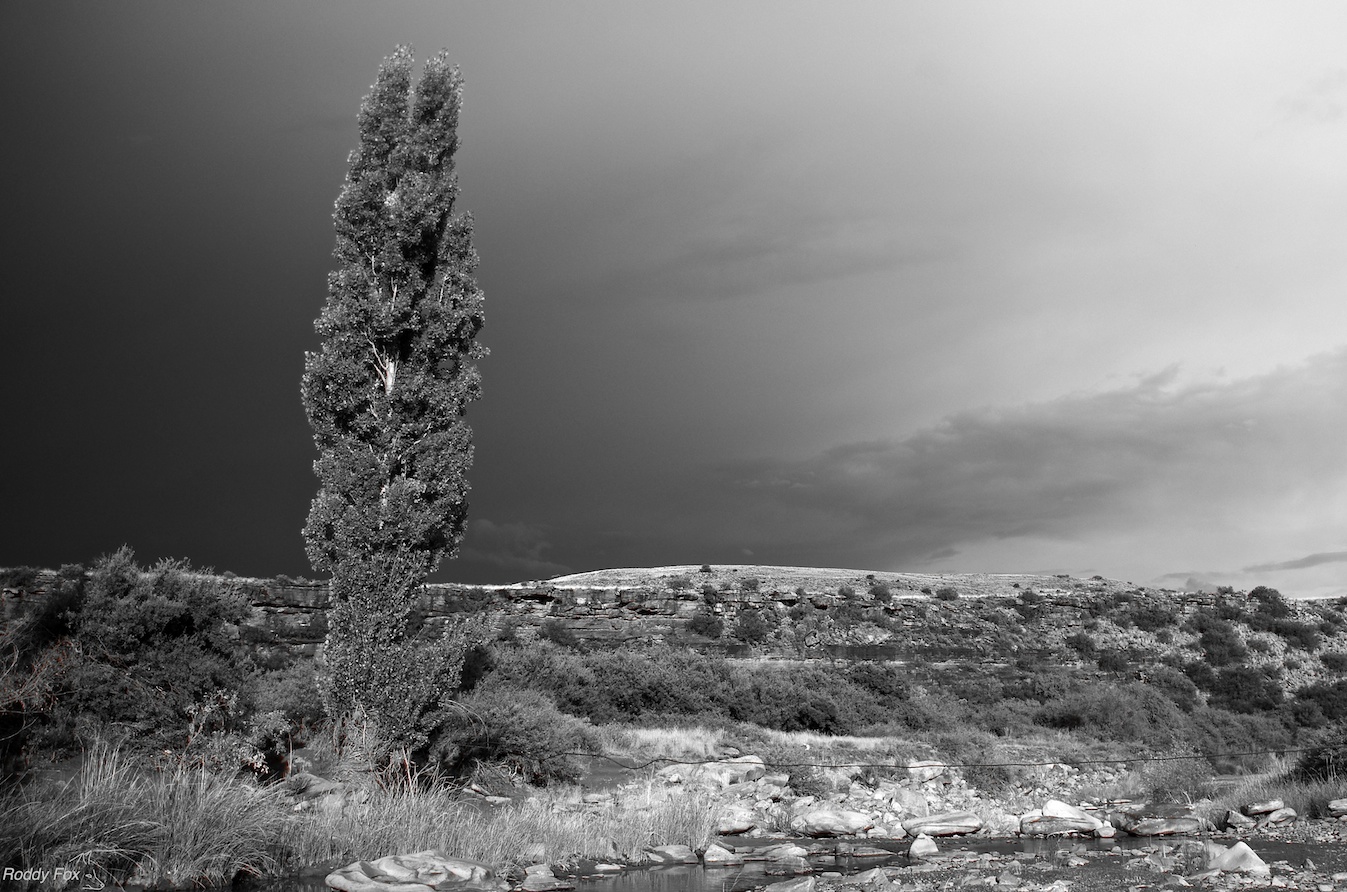 That evening we went down to the river at Ganora Farm to place a flow meter into the river bed but the lightning was so intense that we didn’t dare until the storm had passed. I did get a nice picture, though, of a lone poplar that was being bent over by the strong down drafts.