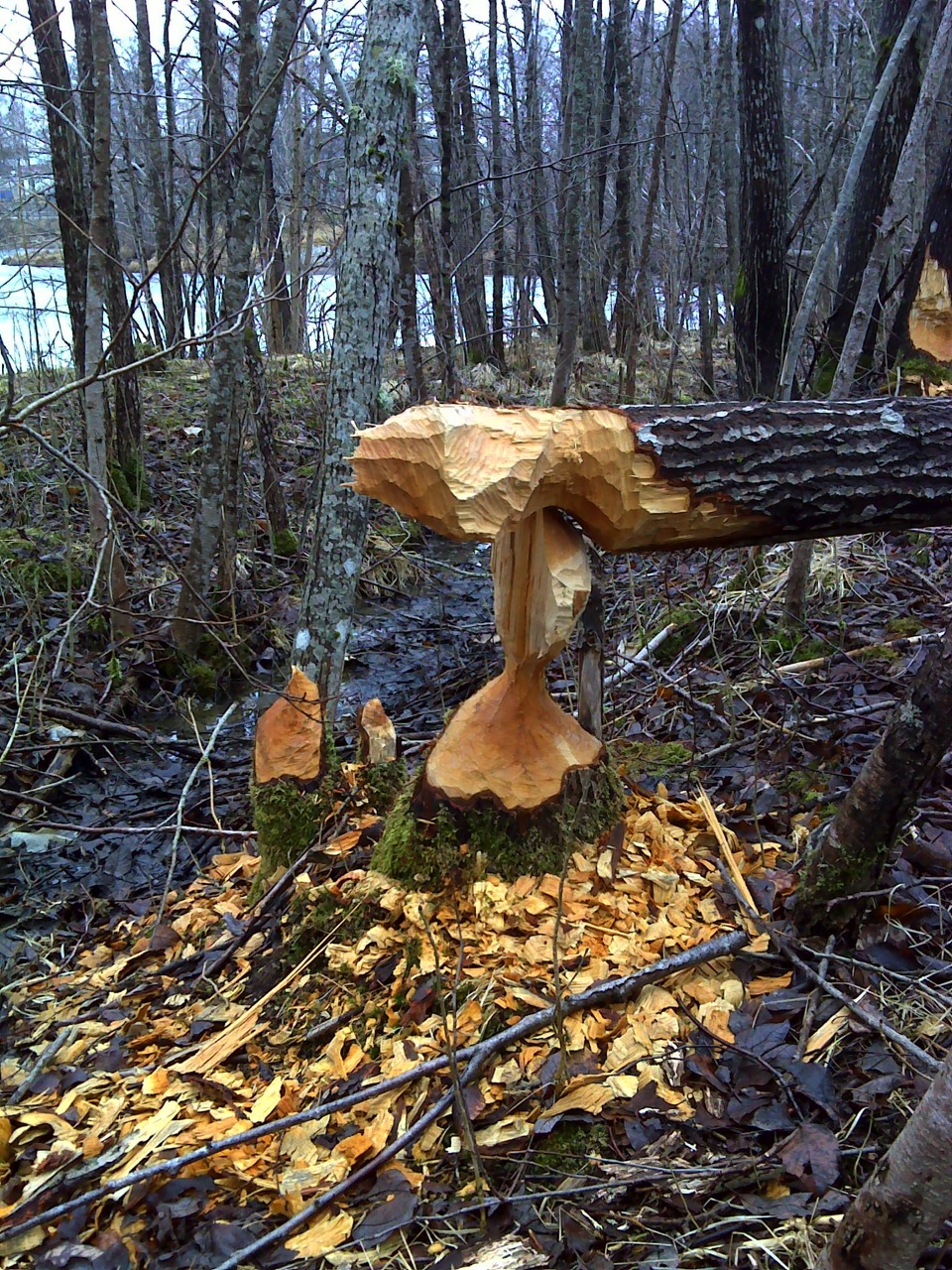 The beavers have certainly been busy creating tree sculptures and demolishing whole trees: just leaving trails of wood chips to show where the trees had been felled!