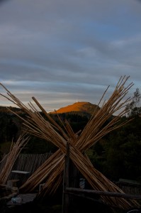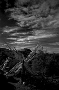 This composition was right outside Helen’s house: the building poles were stacked above the fire pit with Tor Doone looming behind them. I couldn’t resist taking another, with completely different clouds, the following morning when we set off for one of our walks.