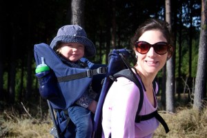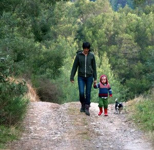 Family walks with small children and an even smaller puppy can be slow affairs. Here’s Helen holding hands with Luke and her new puppy, Rain, trotting along beside them This was taken in poor light with my telephoto lens looking down the long hill beside Helen’s house. The next day we had another walk – to Luke’s ‘Niagara’ waterfall – and here is Sophie being carried in her backpack by Jeannie.