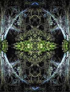 Night photography allows me to make some unusual images. I lit the forest path below Dassie Krantz with three lights and, by chance, there appeared a blue phosphorescent effect on the thorn tree. Mirroring then gave me this lovely blue portal.