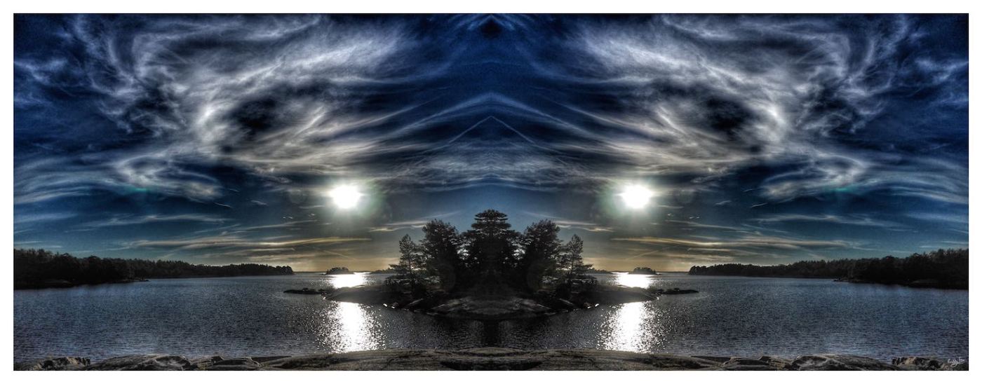 I like the tranquility, the curling clouds and the range of blues which make you wonder is it night or day?