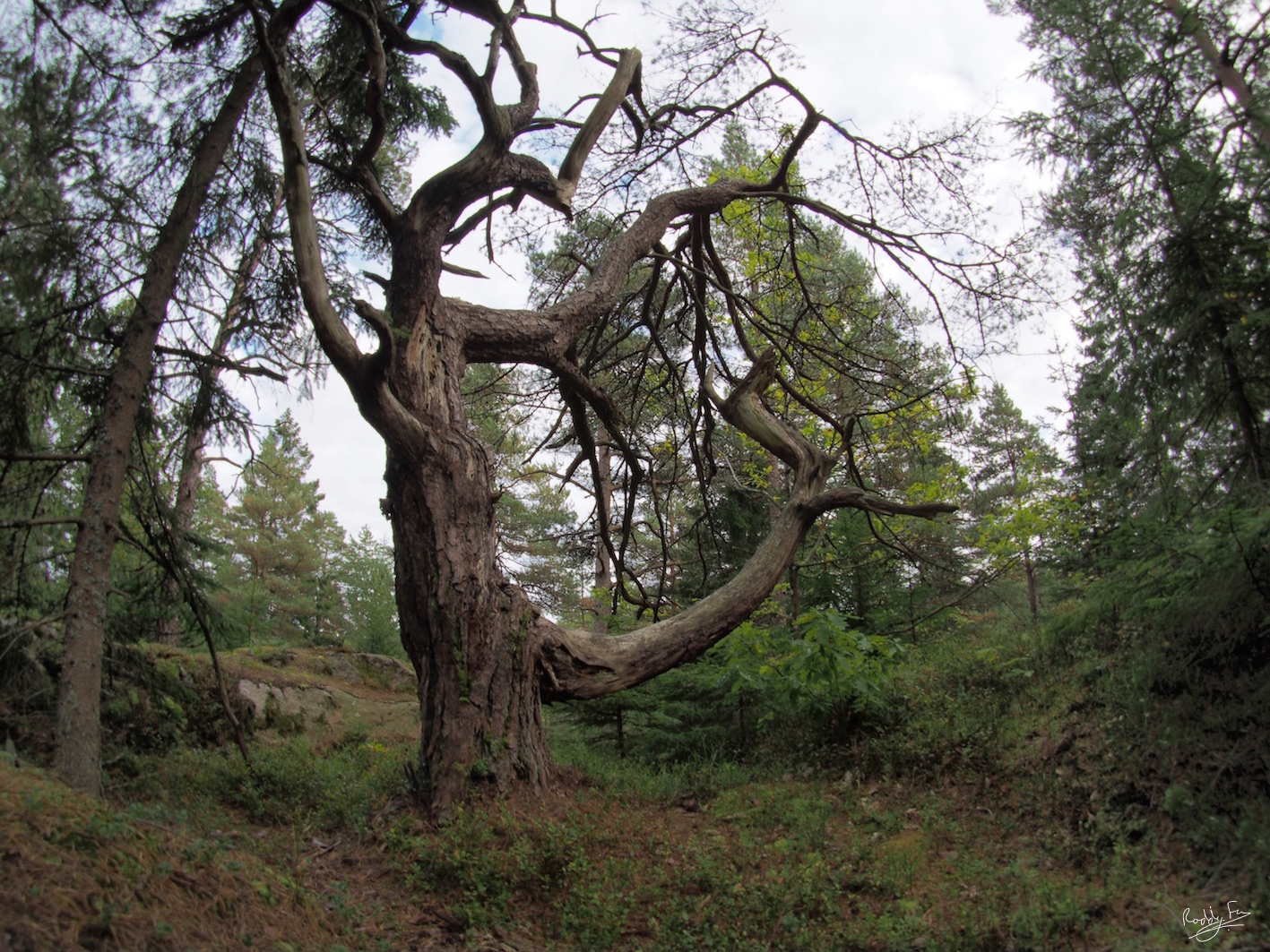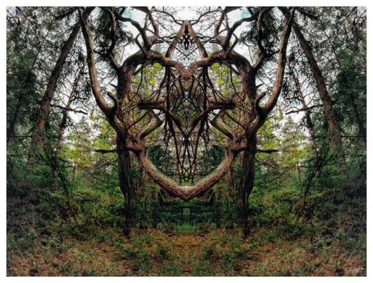 It’s an image of a Scots Pine tree (tal in Swedish) deep in the forest near our apartment in Äsperöd, Sweden. I’ve mirrored it into two and also overlaid the image on itself. This is the original.