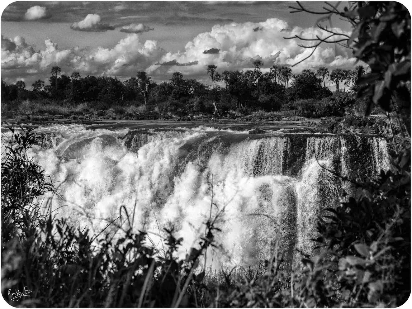 At the start of your walk along the Falls is the imposing commemorative statue of David Livingstone. Then you work your way along the edge of the gorge opposite the sheer drop of the Falls. The Devil’s Cataract is a really impressive amphitheatre of mist forest. The Main Falls have huge streams of water separated by Livingstone Island. If you look back along the way you have come from Danger Point you see the mist billowing high up into the air above you. It’s quite an experience and something I hope I’ve managed to capture with this set of black and white pictures.