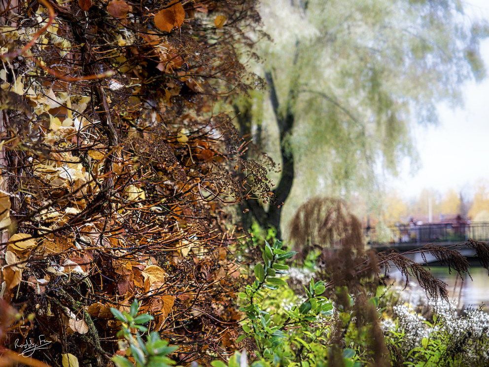 These pictures go along paths and over bridges, through forests and beside rivers. This isn’t so much a walk as a hop, skip and jump. So we’ll start with the short hop beside the Faluån. It’s not exactly a forest but it’s well wooded with a lovely range of colours and the hint of a bridge in the background.