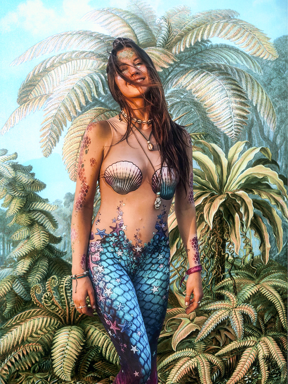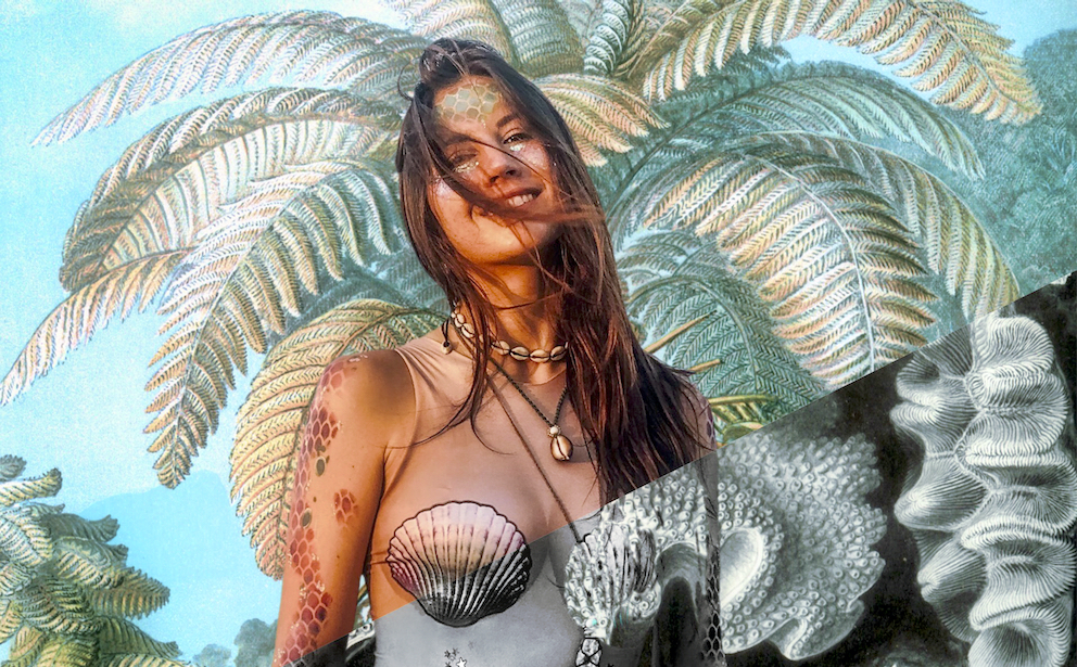 The long lockdown has sent me in some new artistic and photographic directions. Here’s a great example. I wanted to make some yoga art with the beautiful Cape Town based yoga teacher Shelby Kleynhans (@yogi_shelby) and asked her to send me some yoga pictures to work with. These I will show you in my next post … because she also sent me some shots where she is a mermaid walking along the beach in Mozambique. That’s where Ernst Haeckel enters our story. I’ve admired his scientific artworks for a long time. They inspired the Art Deco movement and have beautiful rich organic shapes. You can see some of his classic illustrations in Kunstformen der Natur. I was inspired to mask out the Indian Ocean background from Shelby’s mermaid picture and replaced it with a couple of whole page illustrations from Haeckel’s works. She looks like she’s stepping out of the pages – I think it’s a lovely effect!